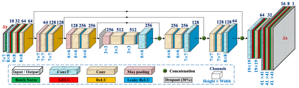 针对上述问题,本研究提出了一种混合先验策略,并将其与深度学习驱动的集合平滑器(ESDL)结合使用。ESDL通过深度学习模型(图1)学习模型输出空间距离(新息向量)与对应的参数空间距离(更新向量)之间的非线性映射关系。通过这种方式,ESDL能够根据新的观测数据与模型输出之间的差异,利用训练好的深度学习模型进行参数更新,从而提高参数估计的精度。在此基础上,通过引入了混合先验策略,即先验信息来源于不同类型的含水层空间分布假设,如符合对数高斯分布(P1)、渠道特征分布(P2)等。如图2所示,深度学习模型利用具有相同或不同先验假设的样本配对,例如,对数高斯分布与对数高斯分布(P1 vs. P1)、渠道特征分布与渠道特征分布(P2 vs. P2),以及对数高斯分布与渠道特征分布(P1 vs. P2)来学习新息向量与更新向量之间的非线性映射。这种多样化的样本配对丰富了特征学习,有效缓解了过拟合问题,并提升了模型在处理有偏先验时的泛化能力。通过这种方式,ESDL能够更好地适应不同类型的含水层特性,在复杂的地下水系统中保持较高的刻画精度和稳定性。